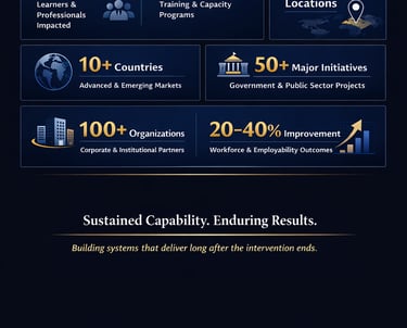 What distinguishes our impact is not scale alone—but the ability to embed capability into systems. We do not deliver one-time interventions; we build frameworks that continue to perform long after the engagement ends.